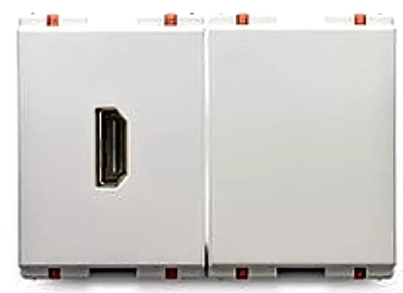 - Estructura plástica con frente de color blanco o de color negro, en tamaños 36 mm, apto para obtener un placa con doble conector HDMI, o combinar con otro módulo adicional.