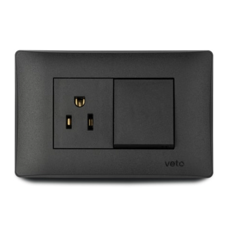 Interruptor + Toma Corriente Con Polo Oslo Negro Veto