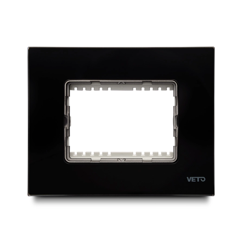 Placa decorativa con bastidor metálico con hueco de 72mm, vidrio color negro